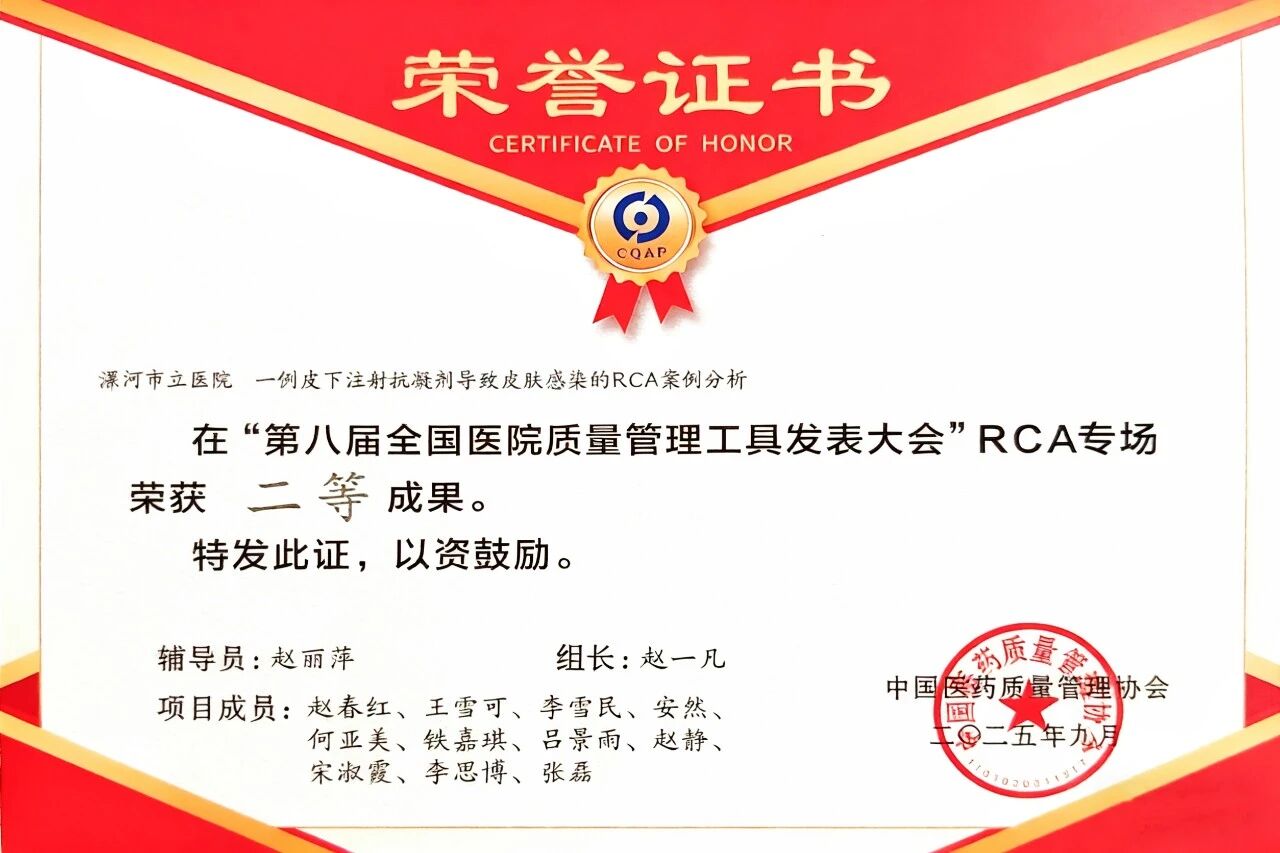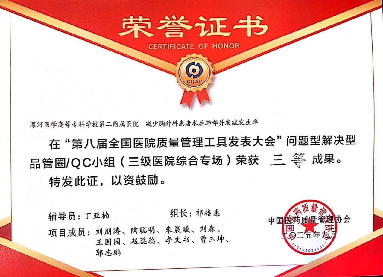 近日,第八屆醫(yī)院質(zhì)量管理工具應(yīng)用成果發(fā)表大會(huì)在重慶落幕。此次大賽共有來自全國(guó)的600多項(xiàng)課題參賽,其中413個(gè)項(xiàng)目入圍決賽,競(jìng)爭(zhēng)激烈。 漯河醫(yī)專二附院(漯河市骨科醫(yī)院、漯河市立醫(yī)院)關(guān)節(jié)外科選送的RCA項(xiàng)目與胸外科選送的"非常好圈"品管圈項(xiàng)目,在各自專場(chǎng)中展現(xiàn)了扎實(shí)的專業(yè)素養(yǎng),最終在眾多優(yōu)秀團(tuán)隊(duì)中勝出,分別斬獲二等獎(jiǎng)和三等獎(jiǎng)。