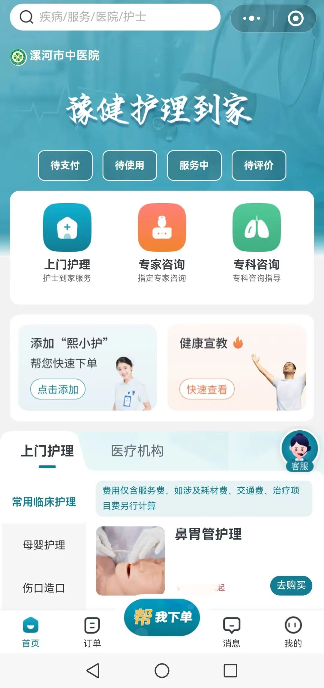 漯河市中醫(yī)院推出的“豫健護理到家”服務,是“互聯(lián)網(wǎng)+護理服務”模式的積極探索,將專業(yè)的醫(yī)療護理從醫(yī)院機構延伸至社區(qū)居民家中,既滿足市民居家護理需求,方便特殊群體、減輕家庭照護負擔,也彰顯醫(yī)院社會責任與醫(yī)療溫度,為構建醫(yī)養(yǎng)結合服務體系提供有力支撐。