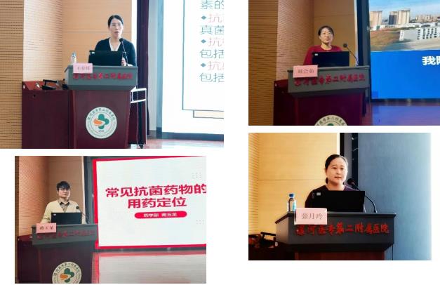 培訓(xùn)環(huán)節(jié),急診重癥監(jiān)護(hù)室主任王春枝、藥學(xué)部抗感染臨床藥師劉會(huì)茹、藥學(xué)部抗感染臨床藥師蔣玉龍、檢驗(yàn)科副主任張?jiān)铝幔謩e圍繞《是治療,還是打擾?-重新審視我們的抗菌藥物處方》《我院抗菌藥物應(yīng)用存在問(wèn)題及分析》《常見(jiàn)抗菌藥物的用藥定位》《微生物標(biāo)本規(guī)范采集》進(jìn)行內(nèi)容分享。