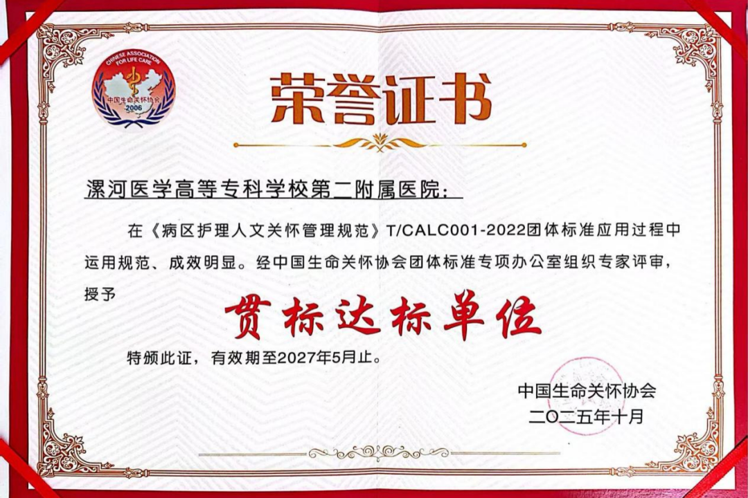 ■ 榮獲全國(guó)“病區(qū)護(hù)理人文關(guān)懷團(tuán)體標(biāo)準(zhǔn)貫標(biāo)達(dá)標(biāo)單位”稱號(hào)