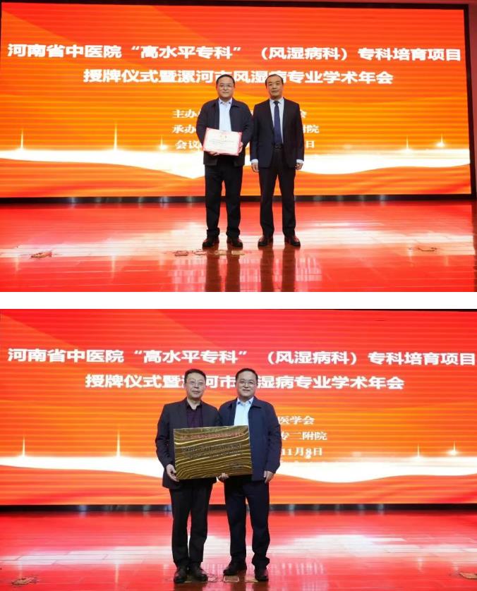 會(huì)上,王齊超院長代表漯河醫(yī)專二附院為孟慶良教授頒發(fā)特聘專家聘書。孟慶良教授代表河南省中醫(yī)院為漯河醫(yī)專二附院“高水平???rdquo;(風(fēng)濕病科)專科培育項(xiàng)目授牌。此次授牌搭建起河南省中醫(yī)院與漯河醫(yī)專二附院的專科共建橋梁,不僅將推動(dòng)漯河地區(qū)風(fēng)濕病專科的體系化發(fā)展,更有望通過中西醫(yī)結(jié)合診療模式的深化,為我市風(fēng)濕病患者帶來更優(yōu)質(zhì)、便捷的醫(yī)療資源。