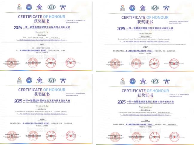 學校代表隊憑借扎實的專業(yè)知識、嫻熟的操作技能和穩(wěn)定的賽場發(fā)揮,在多個賽項中表現(xiàn)搶眼:胡巧同學在“醫(yī)學圖像后處理”賽項中勇奪一等獎;皇巧梅同學在“CT檢查技術(shù)及診斷”賽項中同樣摘得一等獎;仝鑫琦同學在“X攝影檢查及診斷”賽項中獲二等獎;李印同學在“超聲檢查技術(shù)”賽項中獲三等獎。