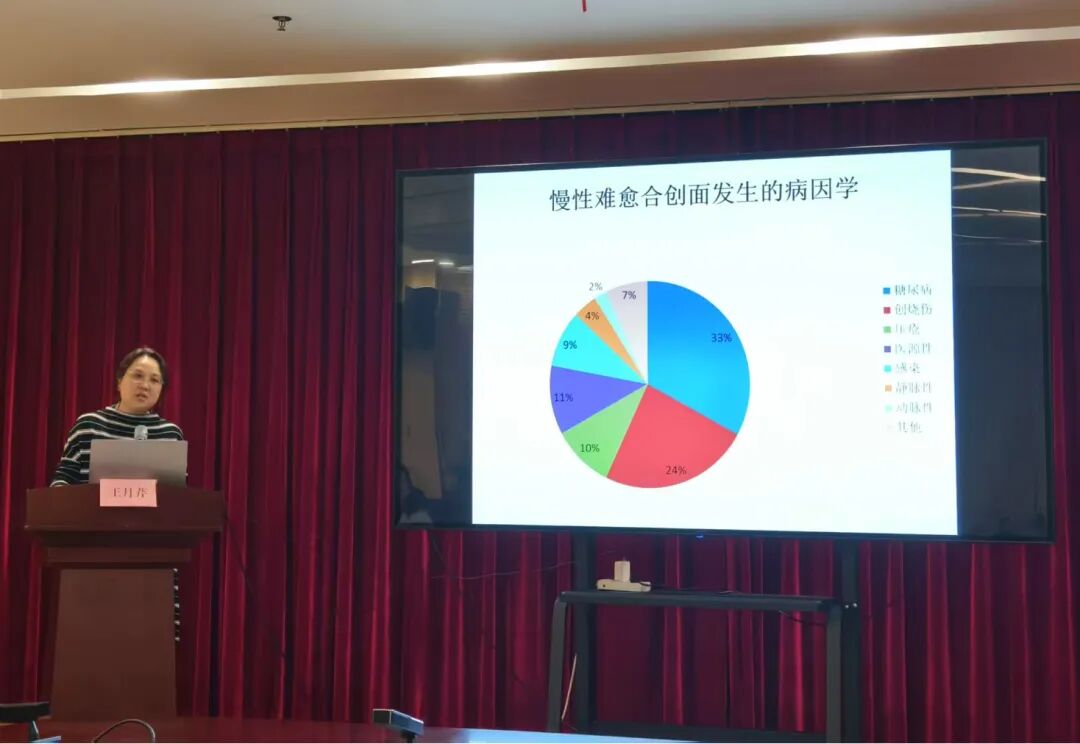 漯河市護(hù)理學(xué)會(huì)傷口造口失禁專業(yè)委員會(huì)委員、漯河市中醫(yī)院護(hù)理部主任郭書娟講述了《影響傷口愈合的因素》,她圍繞“傷口愈合”形成完整邏輯鏈,先講述愈合機(jī)制、再析影響因素、最后用案例落地,兼具理論性與臨床指導(dǎo)性。