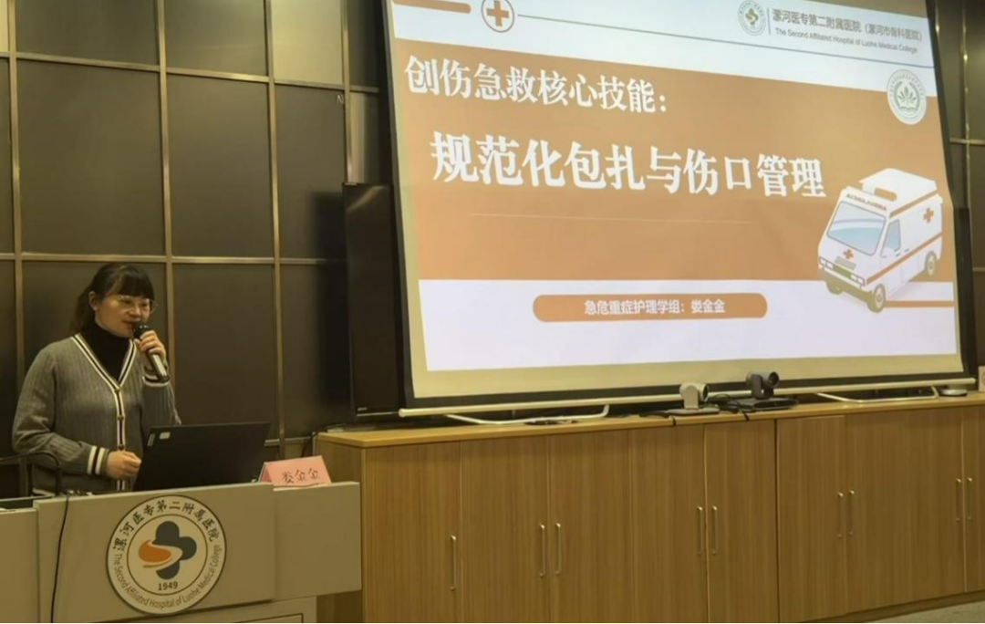 急危重癥護(hù)理學(xué)組組長婁金金聚焦《創(chuàng)傷急救核心技能:規(guī)范化包扎與傷口管理》,結(jié)合“黃金1小時(shí)”救治原則,強(qiáng)調(diào)包扎操作的時(shí)效性與規(guī)范性,通過對比不同傷口處理案例,演示正確操作對控制出血、預(yù)防感染的關(guān)鍵作用,夯實(shí)醫(yī)護(hù)人員的基礎(chǔ)急救能力。