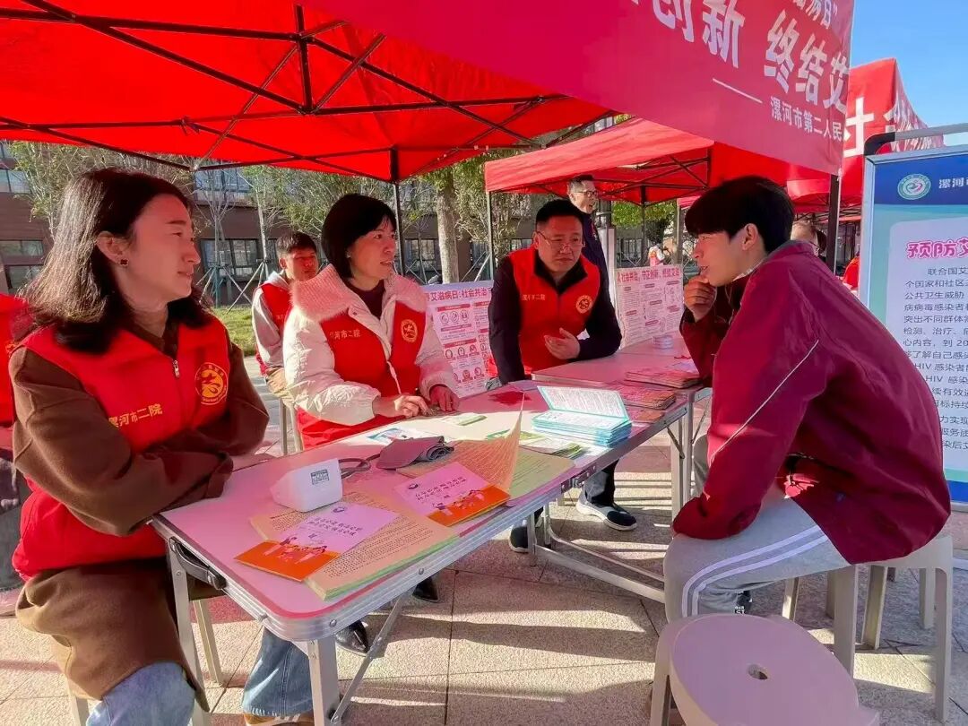 醫(yī)務(wù)人員一早便趕到活動現(xiàn)場,擺放宣傳版面,發(fā)放宣傳彩頁,向大家詳細(xì)介紹了艾滋病的傳播途徑、預(yù)防方法以及檢測方式等關(guān)鍵信息,同時,為在校教師和學(xué)生提供健康咨詢和義診服務(wù)。