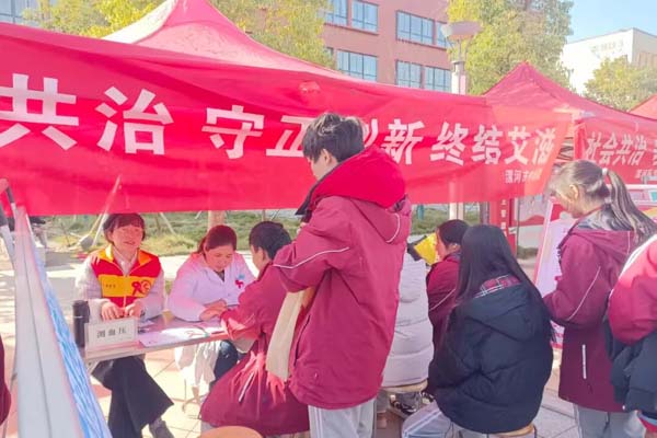 為深入貫徹落實國家關(guān)于艾滋病防治工作的指示精神,提升青少年學生對艾滋病的科學認知,增強自我防護意識與社會責任感,2025年11月28日,在我國第38個 “世界艾滋病日”來臨之際,漯河市中醫(yī)院疾控科前往漯河市第一中等專業(yè)學校(廬山路校區(qū))進行了以 “社會共治,守正創(chuàng)新,終結(jié)艾滋”為主題的義診宣傳活動。