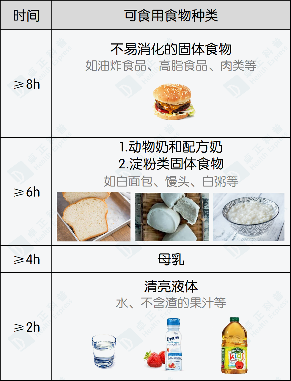 根據(jù)不同食物在胃里的“停留時(shí)間”不同,國(guó)內(nèi)相關(guān)指南規(guī)定,應(yīng)遵循“2-4-6-8”原則: