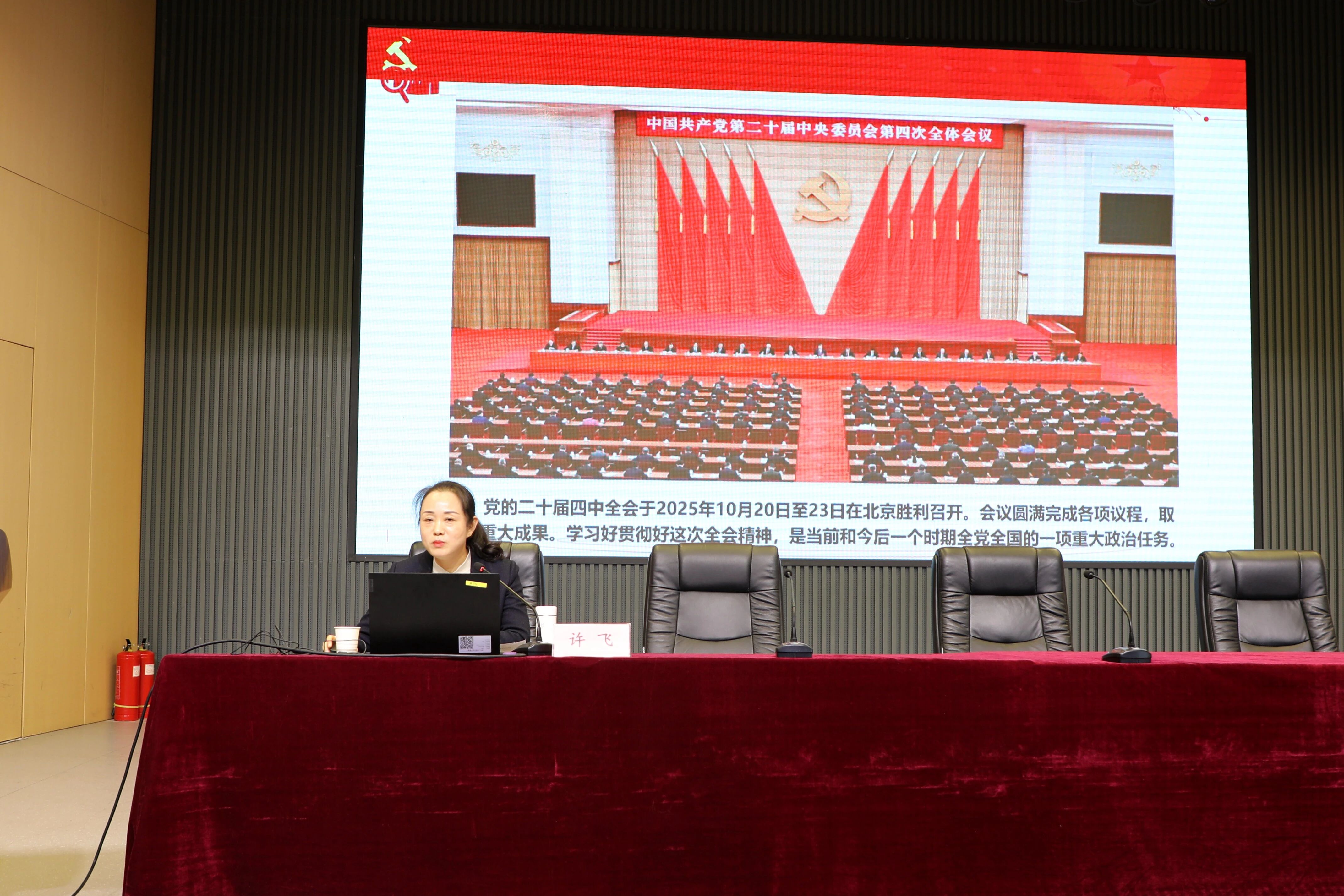 12月23日,市委宣講團(tuán)成員,市委黨校哲學(xué)教研室主任、副教授許飛到市二院開展學(xué)習(xí)貫徹黨的二十屆四中全會精神宣講。市二院黨委書記魏松,黨委副書記、院長胡海英攜班子成員、全體中層干部、全體黨員和部分職工代表參加了會議。會議由紀(jì)委書記孟德陽主持。