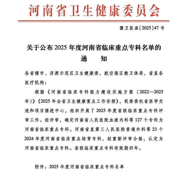 近日,河南省衛(wèi)生健康委發(fā)布《關(guān)于公布2025年度河南省臨床重點名單的通知》(豫衛(wèi)醫(yī)函〔2025〕47號),漯河醫(yī)專二附院(漯河市骨科醫(yī)院、漯河市立醫(yī)院)運動醫(yī)學科與護理專科成功通過評審被確定為河南省臨床重點專科。漯河醫(yī)專二附院再添兩個省級臨床重點專科,標志著這兩大??圃卺t(yī)療技術(shù)、科研創(chuàng)新、服務(wù)質(zhì)量及區(qū)域影響力等方面達到省內(nèi)領(lǐng)先水平。