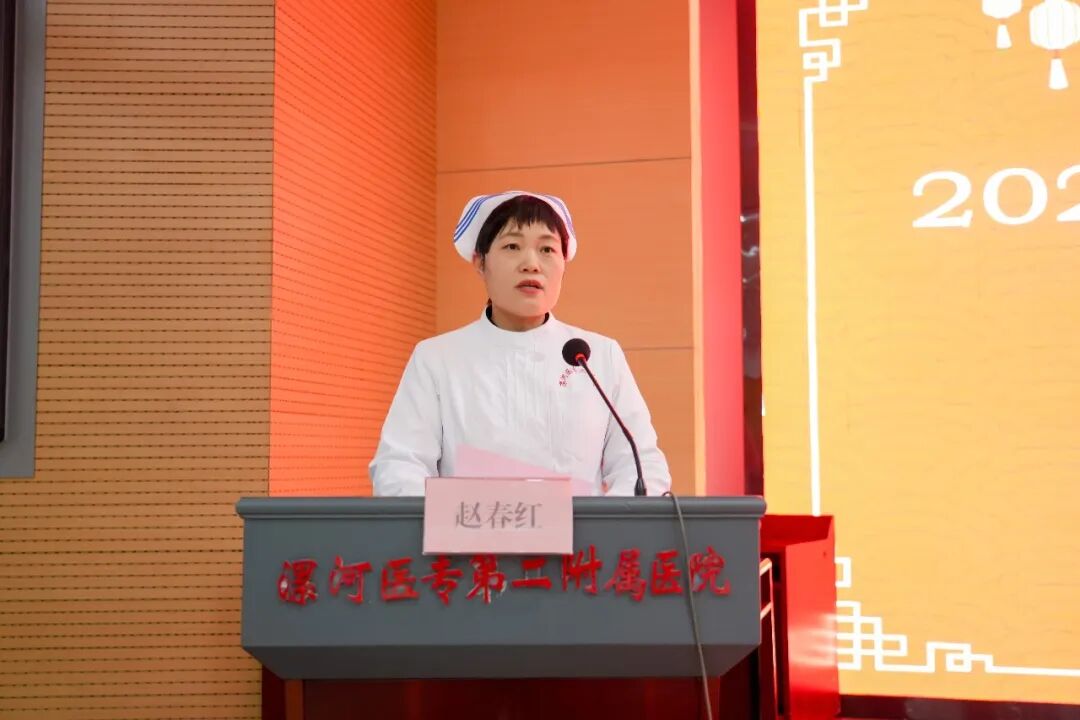 最后,護(hù)理部主任趙春紅作總結(jié)發(fā)言。她全面回顧了本實習(xí)周期護(hù)理教學(xué)工作的開展情況,詳細(xì)梳理了實習(xí)生們從懵懂青澀到熟練干練的成長蛻變,對全體帶教老師的辛勤付出、無私奉獻(xiàn)以及實習(xí)生們的刻苦鉆研、努力拼搏給予了高度評價與充分肯定。同時,趙主任也為即將踏上職業(yè)新征程的實習(xí)生們指明了前進(jìn)方向、寄予了殷切期望。她提到,護(hù)理工作肩負(fù)著“健康所系、性命相托”的神圣使命,是一份需要愛心、耐心、細(xì)心與責(zé)任心的職業(yè),希望同學(xué)們帶著本次大會的榮譽與囑托,帶著在二附院收獲的知識與成長,在未來的護(hù)理崗位上堅守醫(yī)者初心、精進(jìn)專業(yè)技能,永葆愛心與溫度,以專業(yè)能力守護(hù)人民健康,以人文關(guān)懷傳遞醫(yī)者大愛,努力在護(hù)理事業(yè)的廣闊舞臺上實現(xiàn)自我價值、書寫精彩篇章。