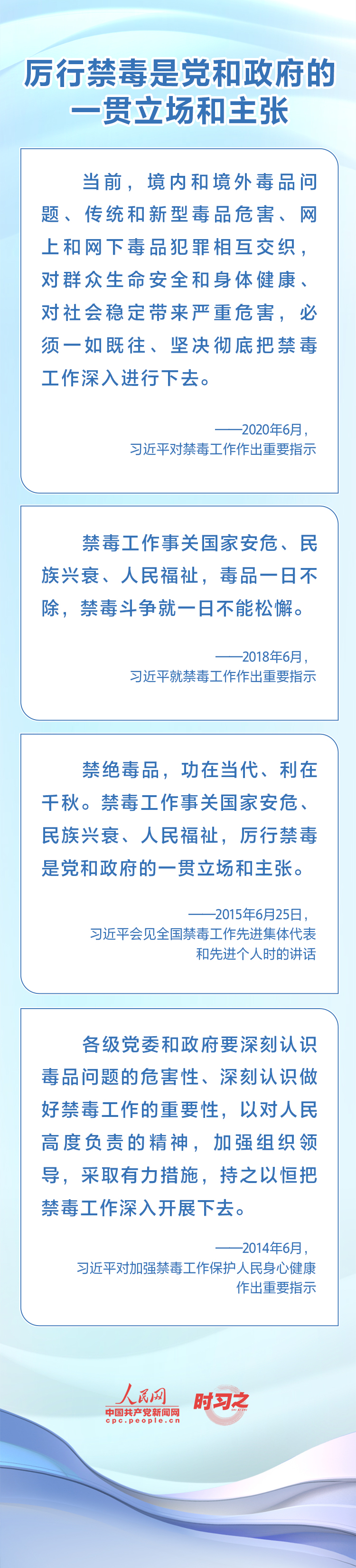 6月26日是國際禁毒日。毒品是人類社會的公害,禁毒工作事關國家安危、民族興衰、人民福祉。黨的十八大以來,習近平總書記多次就禁毒工作發(fā)表重要講話、作出重要指示。讓我們一起從總書記的重要論述里堅定打贏禁毒人民戰(zhàn)爭的信心,提升防毒禁毒意識,遠離毒品。