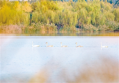 臨潁縣黃龍濕地公園又稱“千畝湖”,濕地、綠化總面積達(dá)1600畝,生態(tài)環(huán)境較好。近年來,在初冬和早春季節(jié),總會有遷徙的天鵝在這里停留休整。