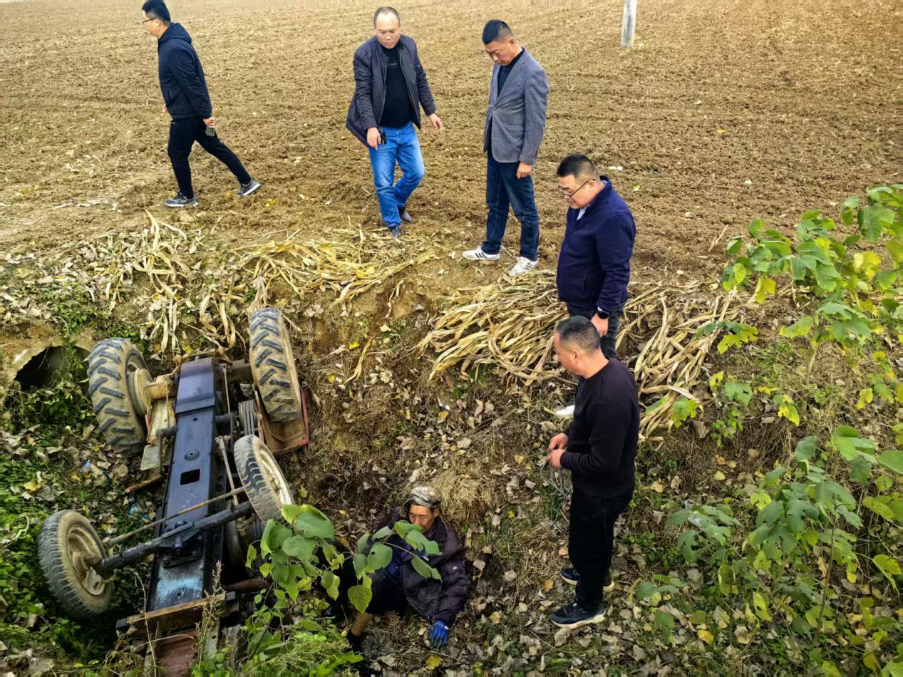 “快過來,有人被拖拉機(jī)壓住了!”王行下車查看后喊道。聽到呼喊聲,幾人立即下車,到達(dá)現(xiàn)場后發(fā)現(xiàn),溝里側(cè)翻著一輛拖拉機(jī),一位老人趴在溝里,他的左手手臂被拖拉機(jī)死死壓著。“王行你馬上聯(lián)系派出所和120來支援,其他人拿上繩索、木棍過來救人。”張慶林看到這一情況,立即組織在場人員開展救援。現(xiàn)場,為將老人從車底救出,六人一起用木棍將拖拉機(jī)固定,待拖拉機(jī)被抬升的一定高度后,王行立即將老人從車底抱了出來。“大爺,你是哪個(gè)村的,現(xiàn)在感覺怎么樣,家里人電話是多少呀?”谷稅興問到,起初老人有點(diǎn)迷糊,過了幾分鐘后才慢慢緩過來。