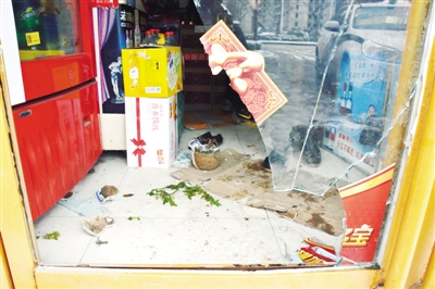根據(jù)民警現(xiàn)場(chǎng)偵查,玻璃門(mén)上的大窟窿,是高近一米、寬半米多的不規(guī)則大洞。卷閘門(mén)也被人破壞,玻璃門(mén)口還有一盆破碎的花盆。超市收銀臺(tái)前被翻得亂七八糟,幾千元錢(qián)被偷,還有一些香煙被盜。“被盜的香煙都是好煙,中華、玉溪、芙蓉王、黃鶴樓等。”民警介紹說(shuō)。
