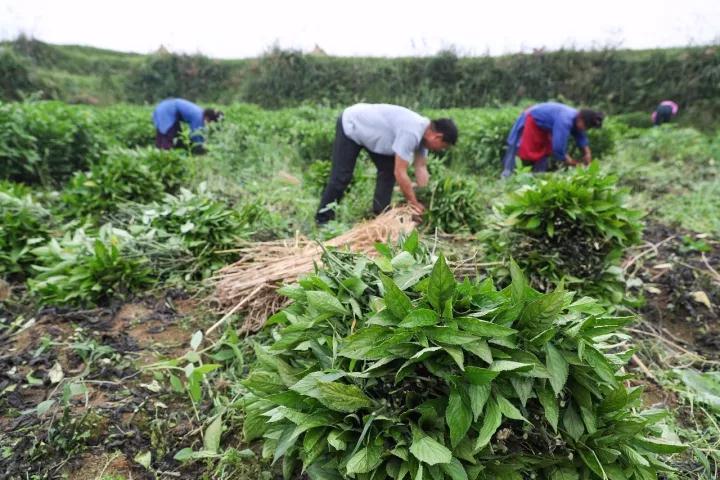 △2017年10月,貴州丹寨縣農業(yè)產業(yè)扶貧項目——板藍根種植喜獲豐收。(圖自視覺中國)