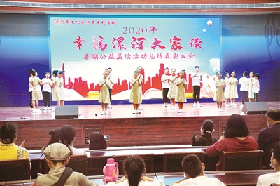 8月22日上午9時(shí)許,在許慎文化園會(huì)議大廳里,孩子們誦讀經(jīng)典的聲音此起彼伏。當(dāng)天上午,為期42天的“幸福漯河大家讀”——2020暑期公益晨讀活動(dòng)正式落下帷幕。今年晨讀活動(dòng)范圍更廣,人數(shù)更多,家長和孩子踴躍參與,引來眾多關(guān)注的目光,也必將對少年兒童的成長產(chǎn)生廣泛、深遠(yuǎn)、積極影響。
