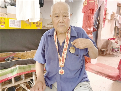 劉付強(qiáng)老人有一個(gè)珍藏的袋子,里面放著他的各種證件和國(guó)家為他發(fā)放的慶祝中華人民共和國(guó)成立70周年紀(jì)念章。