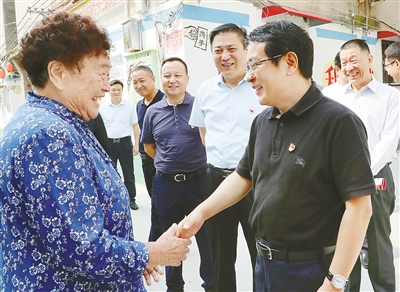 9月27日,市委書記蒿慧杰在源匯區(qū)團(tuán)結(jié)路迎港巷調(diào)研并與居民親切交流。記者 王慶建 攝