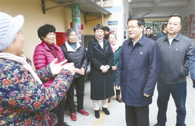 11月25日,市委書記蒿慧杰在二針家屬院小區(qū)調(diào)研新時代文明實踐點建設(shè)情況,并與居民親切交談。記者 王慶建 攝