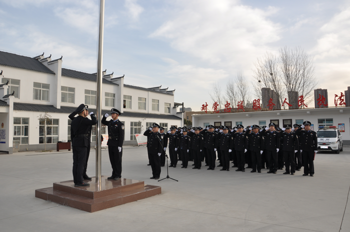 1月10日上午8點(diǎn)30分,分局升警旗儀式準(zhǔn)時開始,三名警旗護(hù)衛(wèi)隊員護(hù)衛(wèi)著警旗來到旗桿下,在雄壯的警歌聲中,警旗冉冉升起,60余名民、輔警面向國旗莊嚴(yán)敬禮。升旗儀式后,全體人員重溫了入警誓詞。整場儀式主題突出、內(nèi)涵豐富,進(jìn)一步弘揚(yáng)了愛國主義精神,加強(qiáng)了忠誠文化建設(shè),激發(fā)了廣大民警輔警的政治榮譽(yù)感和工作責(zé)任心。