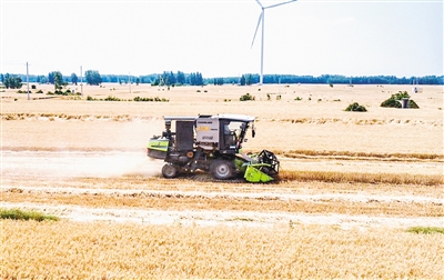 5月23日,舞陽縣辛安鎮(zhèn)花張村附近麥田內,收割機正在收割小麥。王 尊