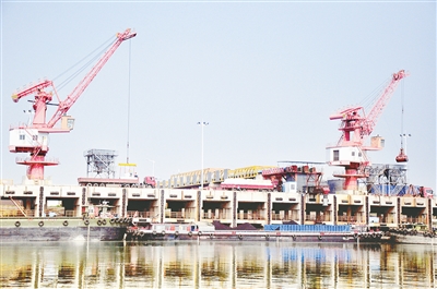 繁忙的漯河港本報(bào)記者 齊國(guó)霞 攝