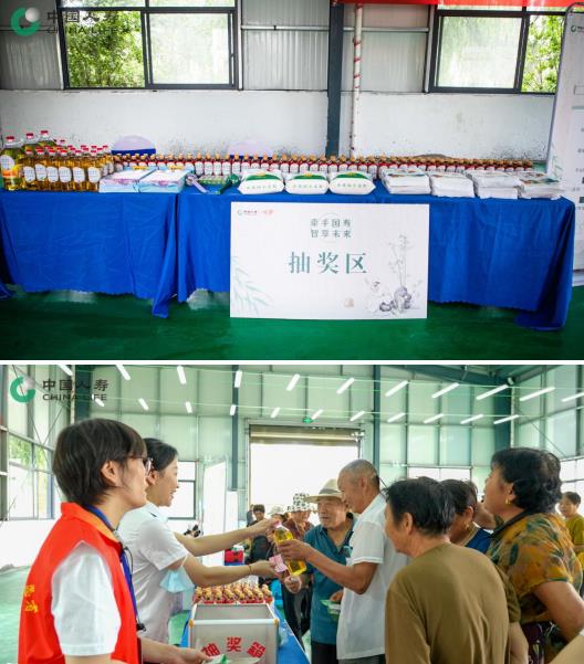 在伴手禮發(fā)放區(qū)和小禮品抽獎(jiǎng)區(qū),河南國(guó)壽貼心地為居民準(zhǔn)備了米、油、艾灸錘等生活必需品,以及適宜夏季飲用的養(yǎng)生飲品——酸梅湯、飲用水和小扇子用于祛暑,為鄉(xiāng)親們帶來(lái)了實(shí)實(shí)在在的暖心關(guān)懷。