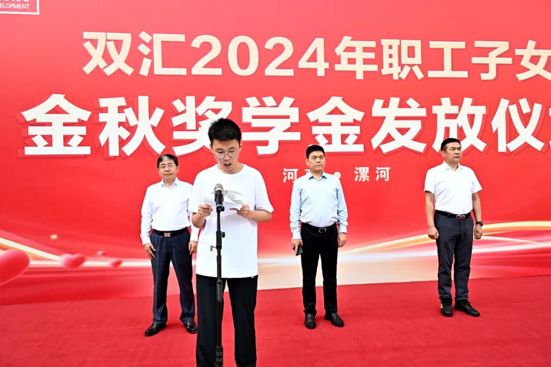 雙匯職工代表薛志良上臺發(fā)言,他表示,企業(yè)對職工子女的關心和支持,讓大家深感暖心,也倍受激勵,并號召大家繼續(xù)發(fā)揚“優(yōu)質、高效、拼搏、創(chuàng)新”的企業(yè)精神,為企業(yè)的偉大征程蓄力添彩。