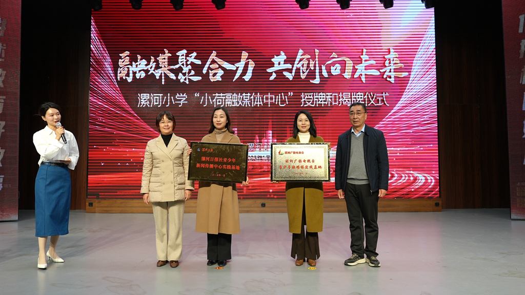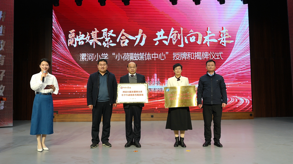 儀式上,河南日?qǐng)?bào)社漯河分社、河南廣播電視臺(tái)、漯河日?qǐng)?bào)、漯河廣播電視臺(tái)、漯河教育電視臺(tái)五家媒體單位向“小荷融媒體中心”授牌,標(biāo)志著該中心正式成為媒體單位的青少年融媒體實(shí)踐基地。