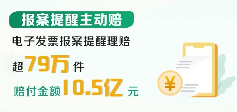 2024年電子發(fā)票報(bào)案提醒理賠超79萬(wàn)件,賠付金額10.5億元。該服務(wù)模式相較于傳統(tǒng)的理賠服務(wù)模式,大大縮減了理賠服務(wù)流程,前置理賠服務(wù)的觸點(diǎn),提升了客戶的服務(wù)體驗(yàn)。