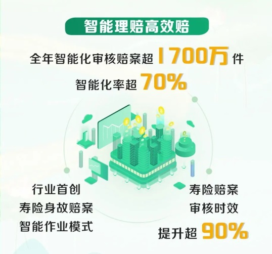 2024年全年,該公司智能化審核賠案超1700萬(wàn)件,智能化率超70%。行業(yè)首創(chuàng)壽險(xiǎn)身故賠案智能作業(yè)模式,符合條件的壽險(xiǎn)賠案審核時(shí)效提升超90%。