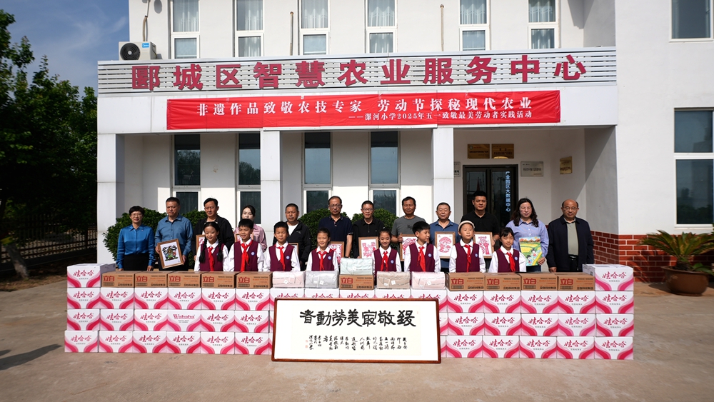 活動伊始,漯河小學(xué)學(xué)生代表王彬宇、王鈺萱、田景銳、夏華苒深情朗誦獻詞《致敬農(nóng)技專家》。隨后,少先隊員們將精心準備的剪紙、書法、繪畫等非遺作品贈予農(nóng)技專家,以表達對這些“大地追夢人”的崇高敬意。隨后,漯河市郾城區(qū)農(nóng)業(yè)農(nóng)村局黨組書記、局長張韶杰等領(lǐng)導(dǎo)及農(nóng)業(yè)科學(xué)家團隊代表登臺,接受這份滿含童真與感恩的心意,并與少先隊員們合影留念。