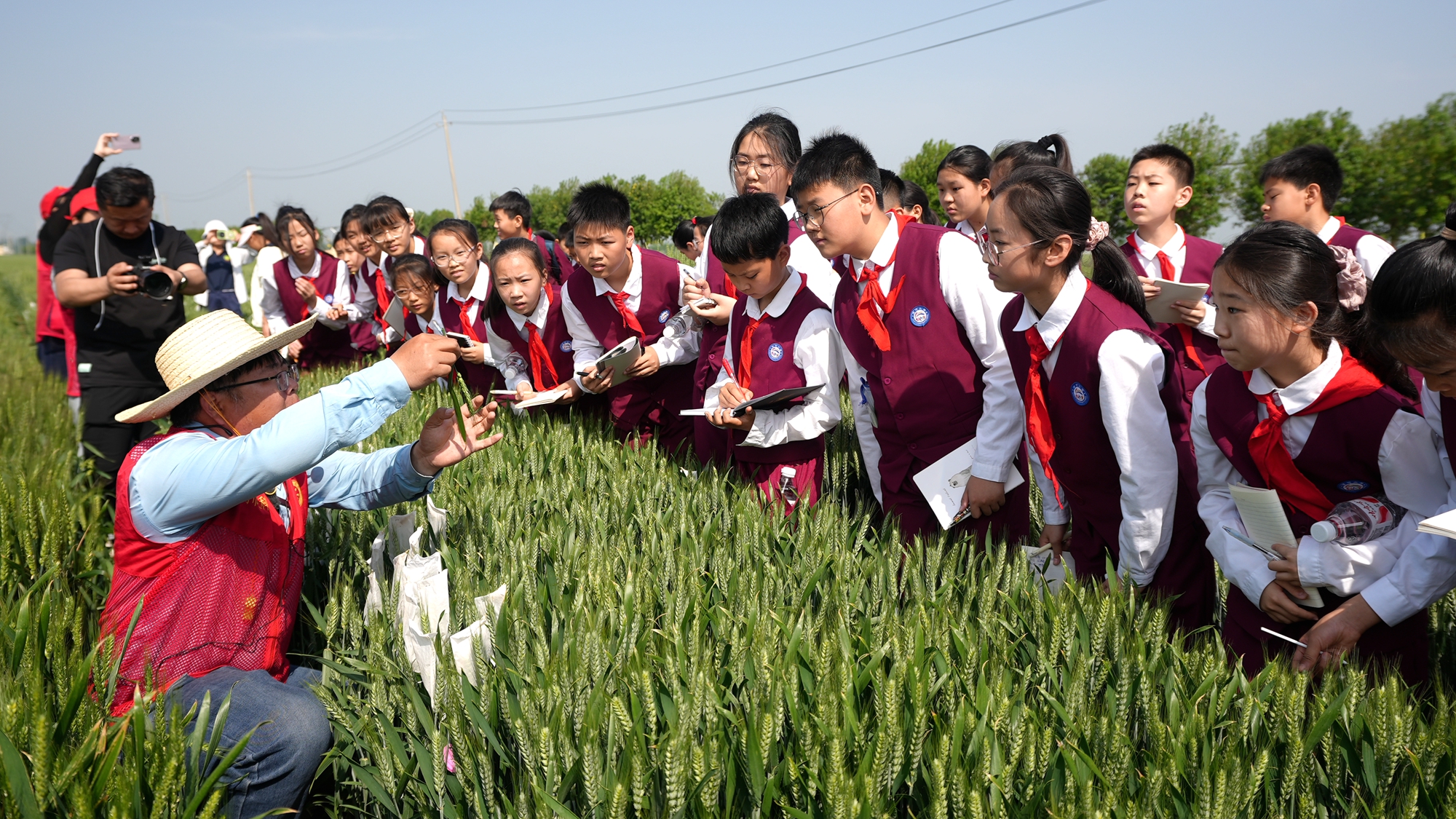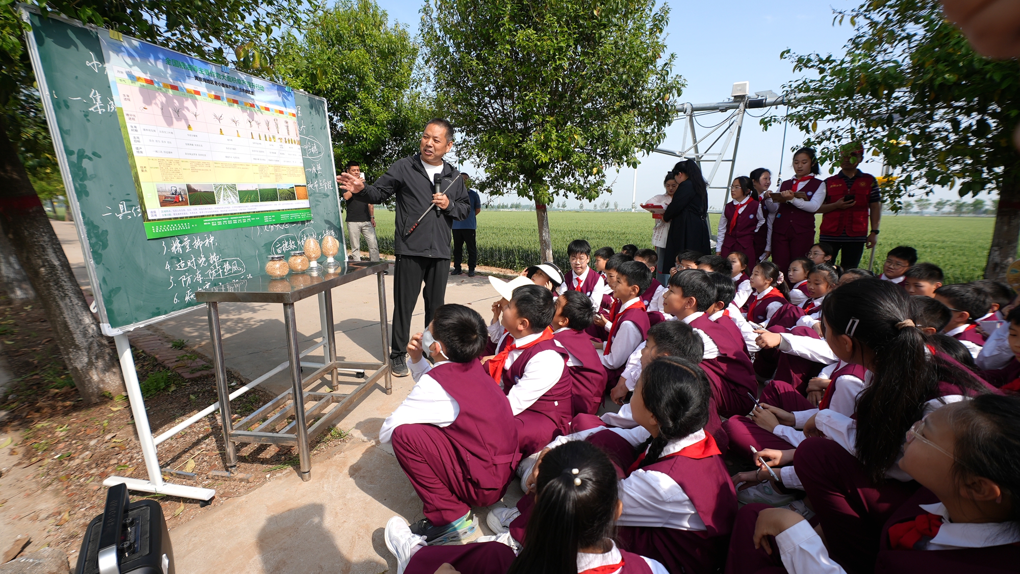 儀式環(huán)節(jié)結(jié)束后,專家為同學(xué)們帶來了精彩講解,深入淺出地科普了小麥的一生、小麥的雜交及品種選育、人工影響天氣作業(yè)、病蟲害物聯(lián)網(wǎng)等知識,揭開現(xiàn)代農(nóng)業(yè)神秘面紗。同學(xué)們認真聆聽,不時記錄下重點內(nèi)容。