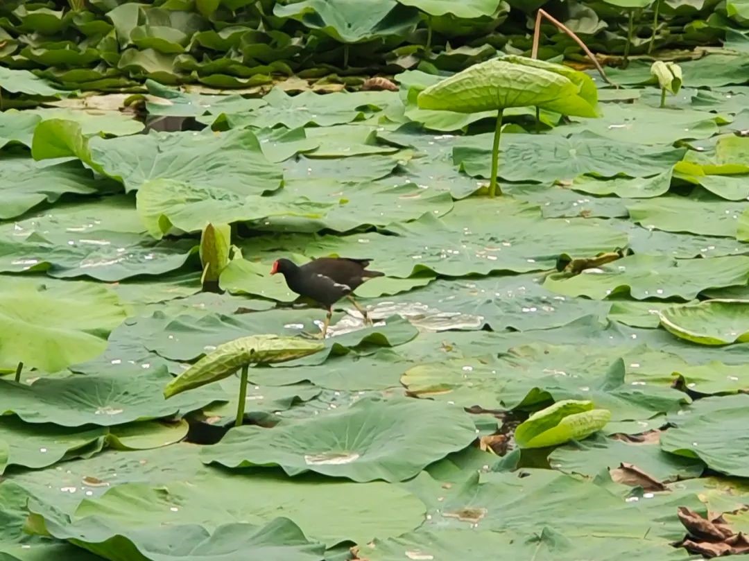 精細管養(yǎng):織就湖面生態(tài)錦緞。“一日六巡兩清” 是養(yǎng)護人員養(yǎng)護日志里的工作準則。每天9點前,養(yǎng)護人員就會駕駛打撈船完成第一次湖面漂浮物清理,到了15點還會進行第二次復(fù)檢,力求讓落葉、雜物打撈干凈。通過優(yōu)化水體循環(huán)系統(tǒng),湖內(nèi)已形成"荷花—微生物—水鳥"的微型生態(tài)鏈:荷花根系固定淤泥、凈化水質(zhì),為魚蝦提供庇護;水草適度生長為鳥類提供天然食物,鳥兒橘紅色腳掌劃開水面的畫面,已成荷塘靈動一景。