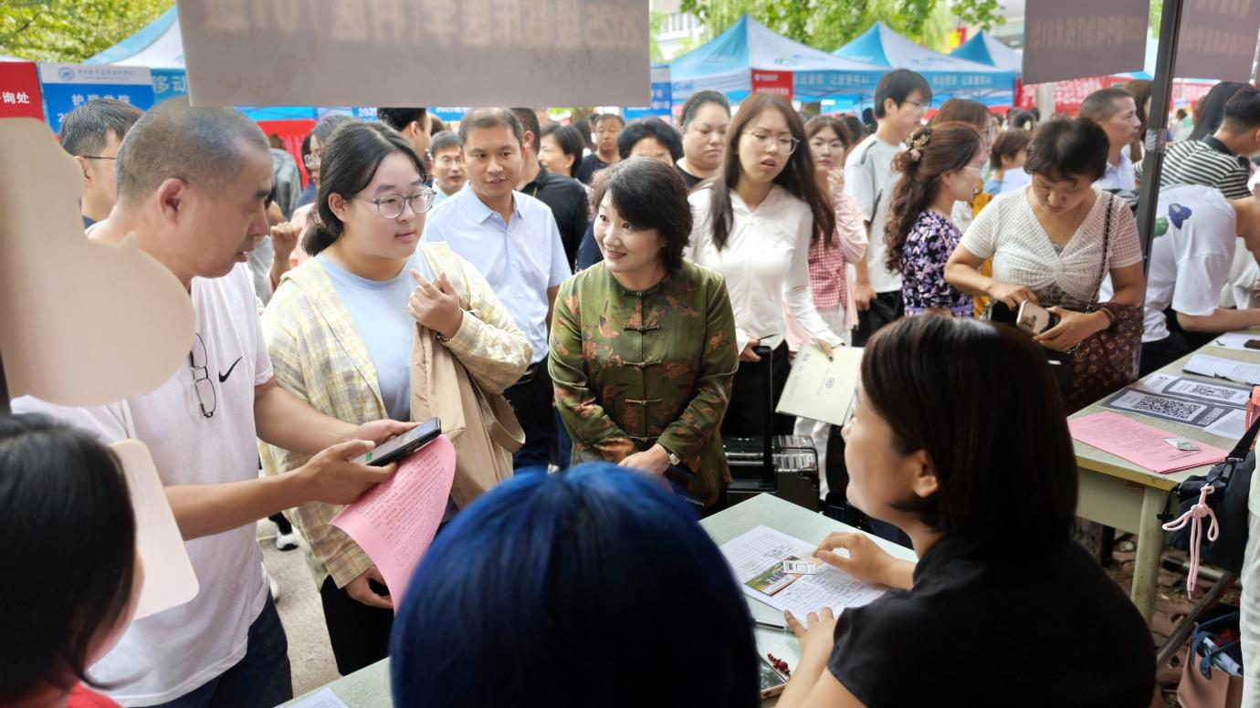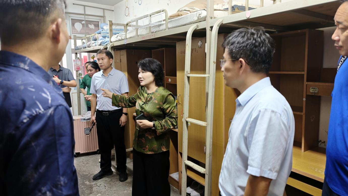 隨后,張祎捷一行走訪了源匯校區(qū)臨床醫(yī)學院、口腔醫(yī)學院、護理學院、藥學院、中醫(yī)學院、醫(yī)技學院迎新點,詳細了解報到情況,仔細詢問新生報到流程,注冊進度和志愿服務安排。每到一處,她都與新生、家長及工作人員深入交流。在學生宿舍區(qū),她重點查看了生活服務保障措施,認真傾聽學生初入校園的感受,鼓勵他們積極適應新環(huán)境、融入大集體,盡快以飽滿的狀態(tài)投入大學生活,并感謝家長對學校的信任與托付。此外,張祎捷一行還前往校區(qū)食堂、超市、志愿服務點,檢查餐飲衛(wèi)生、商品供應、志愿服務等情況,確保新生在校生活需求得到全方位保障。