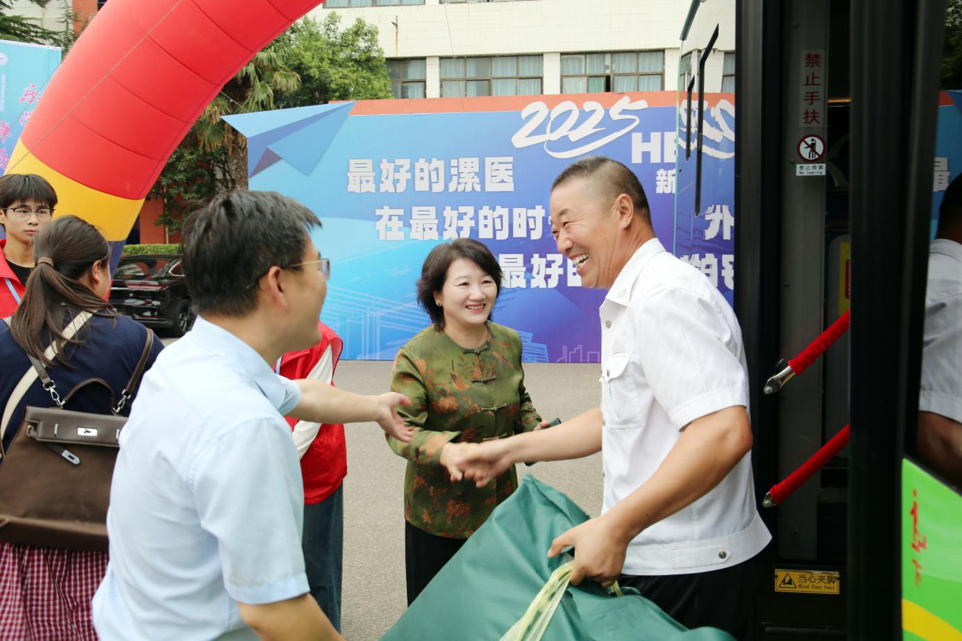 青春乘秋風,壯志啟新程。8月30日,漯河醫(yī)專迎新工作全面拉開帷幕,上午8時,校長張祎捷、校黨委副書記邊曉峰分別帶領校領導班子深入源匯校區(qū)、召陵校區(qū)迎新現(xiàn)場,迎接第一輛駛入校園的新生班車,親切看望2025級新生及家長,并慰問一線工作人員和志愿者。