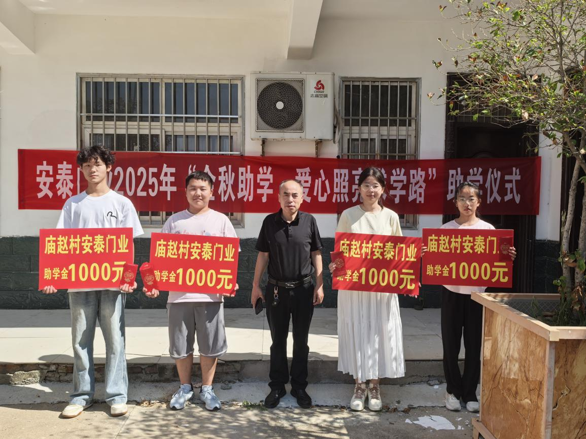2025年8月22日上午,龍城鎮(zhèn)廟趙村洋溢著溫暖與希望的氛圍,愛心企業(yè)安泰門業(yè)2025年“金秋助學(xué)·愛心照亮求學(xué)路”助學(xué)儀式在這里隆重舉行,為村內(nèi)4名即將踏入大學(xué)校門的優(yōu)秀學(xué)子送去每人1000元助學(xué)金,以實(shí)際行動(dòng)履行企業(yè)社會(huì)責(zé)任,鼓勵(lì)村里的優(yōu)秀學(xué)子努力奮進(jìn),幫助他們更好地開啟大學(xué)生活。