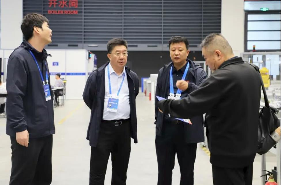 市人社局黨組成員、漯河技師學(xué)院黨委書記馬占欣帶隊察看國賽賽場情況