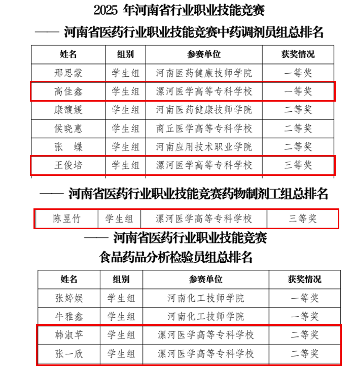 漯河醫(yī)專在河南省醫(yī)藥行業(yè)職業(yè)技能競(jìng)賽中榮獲一等獎(jiǎng)