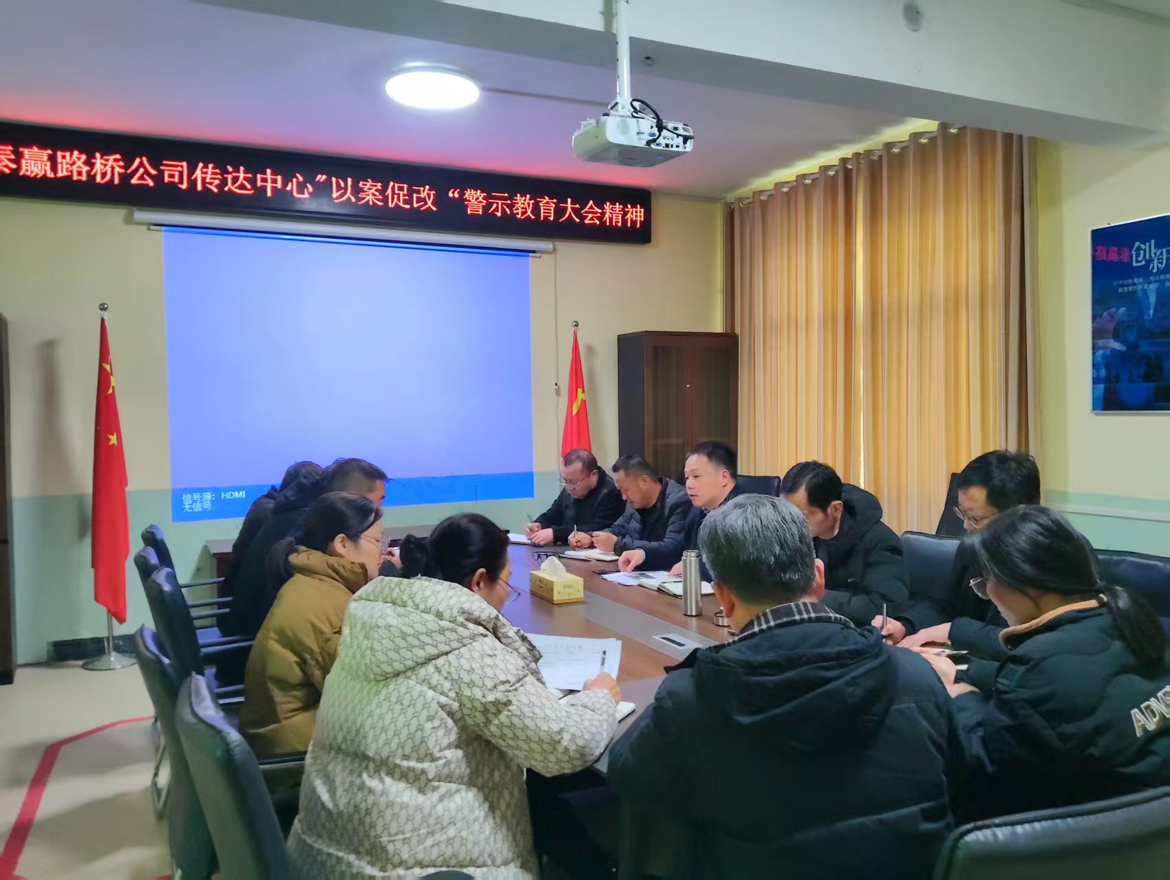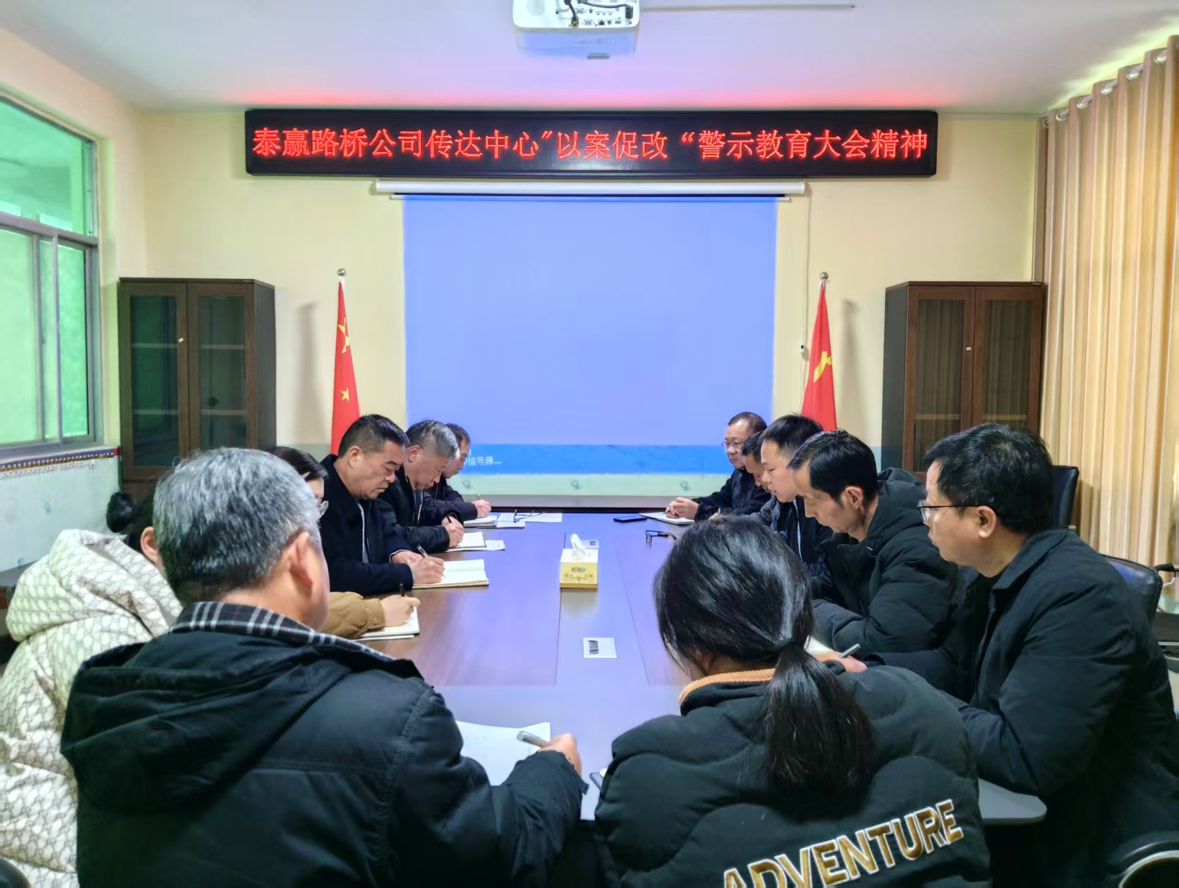為深入貫徹全面從嚴治黨要求,強化干部職工紀律意識與拒腐防變能力,12月29日,泰贏路橋公司組織領(lǐng)導(dǎo)班子、各部門負責人及關(guān)鍵崗位人員召開專題會議,傳達學(xué)習(xí)上級“以案促改”警示教育大會精神。