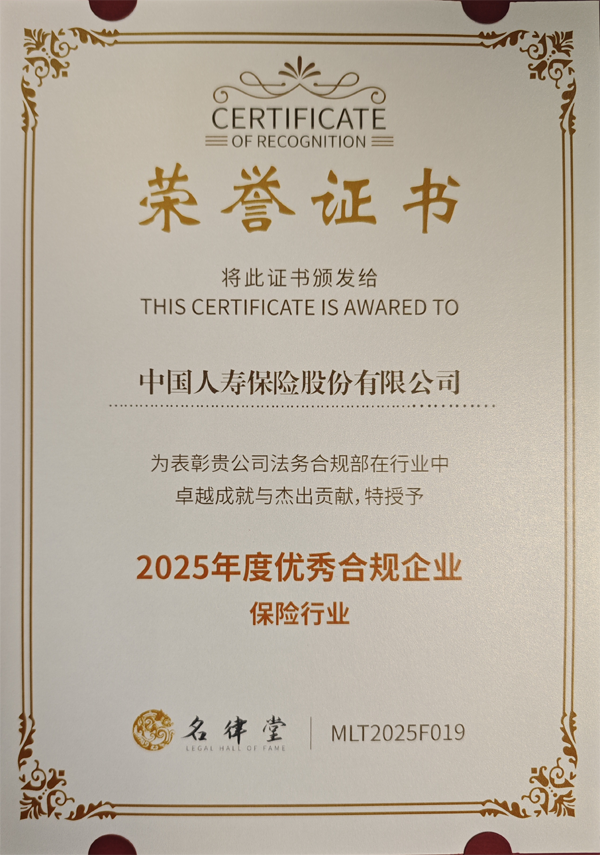 本次評選活動以“完善體系駕馭風(fēng)險 前瞻視野洞見未來”為主題,旨在表彰具有規(guī)范的合規(guī)管理流程與卓越的合規(guī)風(fēng)險管理能力的企業(yè)。這份榮譽(yù)的獲得,是對中國人壽近年來高標(biāo)準(zhǔn)合規(guī)治理成效與高水平合規(guī)風(fēng)險防控的生動見證。