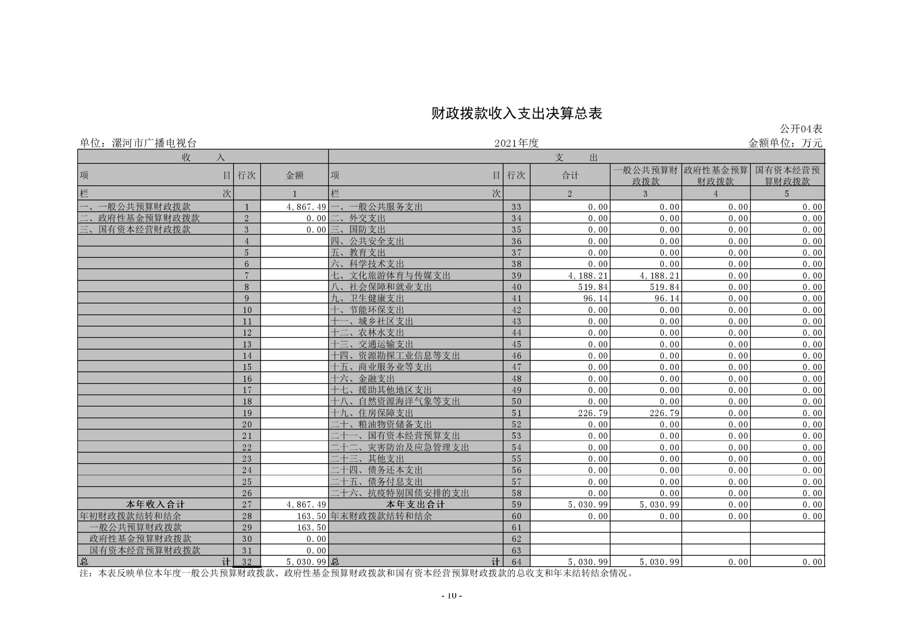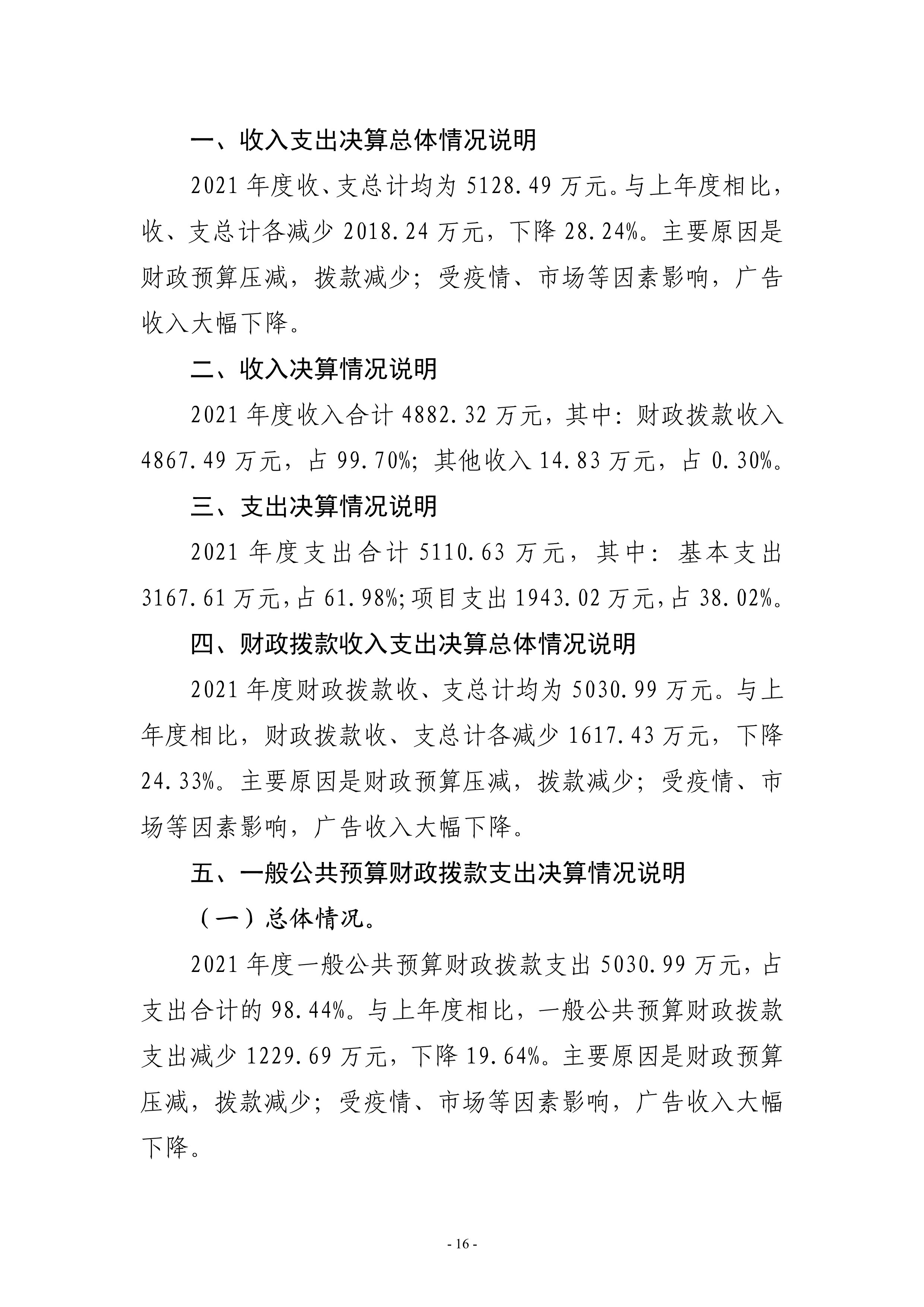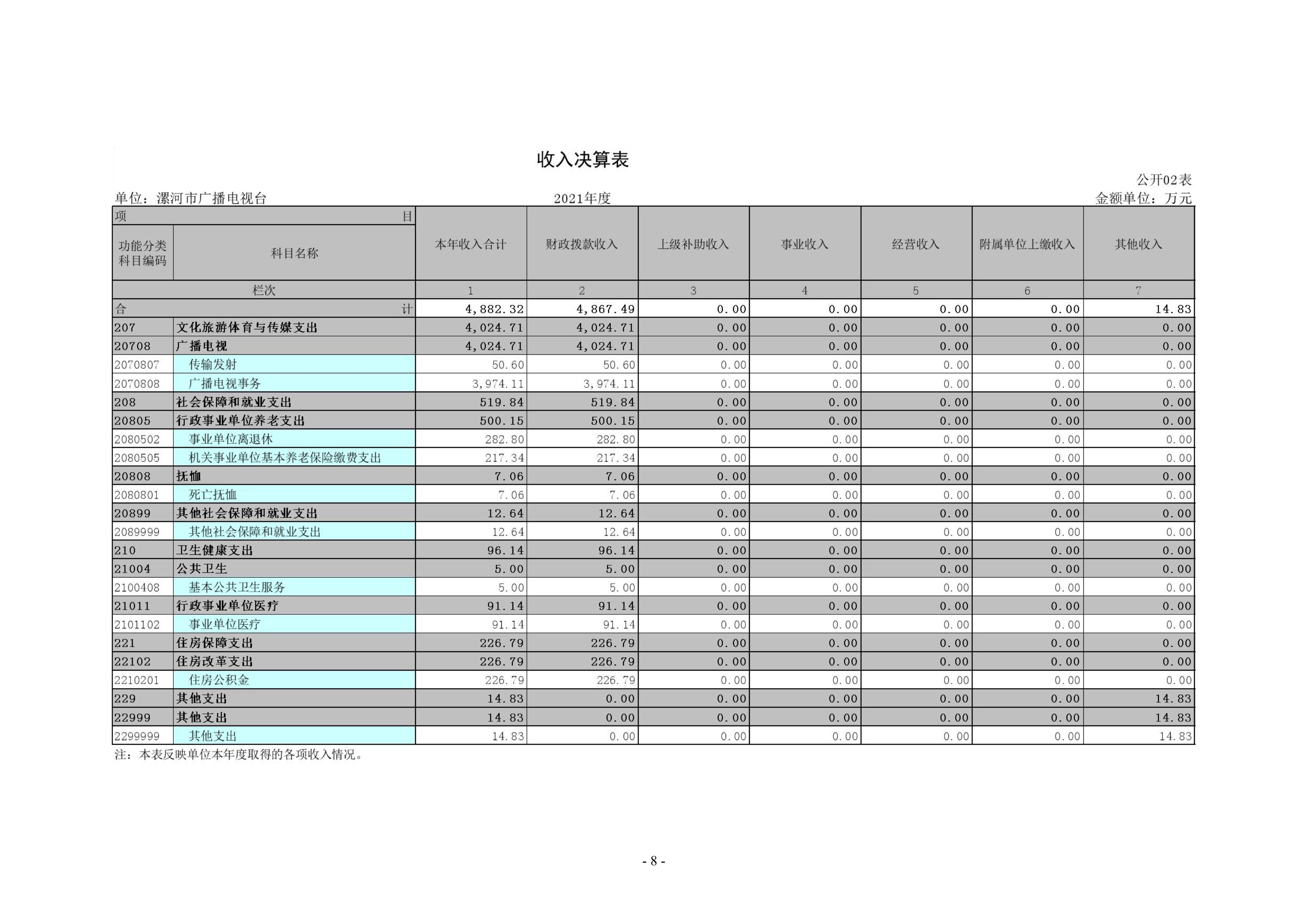 2021年度漯河市廣播電視臺單位決算