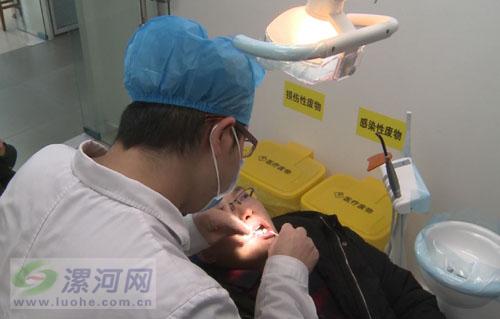 像張燕這樣一家三代都在市二院口腔科治療的不是個例,在其中一個診室,記者見到了一家三口前來檢查牙齒,在給年輕的爸爸檢查完牙齒之后,郭俊磊醫(yī)生開始認真為小朋友做檢查,他神情專注,溫言細語,安撫著小朋友的情緒。