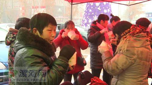 煙廠花園也是我市的人流密集區(qū)域,雖然天上飄著小雨,但仍有大批的愛心志愿者在這里忙碌著,他們正在為過往的市民送上一碗碗熱氣騰騰的愛心粥。除此之外,在丹尼斯、火車站廣場這些漯河最繁華的地段,這里的志愿者從早上七點就開始準備了,他們說,這些粥不僅要為大家?guī)矶盏臏嘏惨蜕瞎?jié)日的祝福。