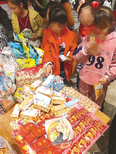 孩子們用學(xué)生奶換零食。記者 姚曉曉 攝