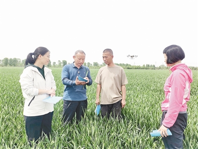 不遠(yuǎn)處的田間道路上,市農(nóng)科院植保所所長(zhǎng)、省小麥體系漯河綜合試驗(yàn)站站長(zhǎng)、省優(yōu)秀科技特派員李世民等專家被一群農(nóng)戶圍著,大家你一言我一語(yǔ)向他們請(qǐng)教各種農(nóng)藥的噴施要點(diǎn)。無(wú)人機(jī)運(yùn)送車上,放置著防治赤霉病、蚜蟲等病蟲害的農(nóng)藥,還有促進(jìn)小麥灌漿的氨基酸等各種肥料。