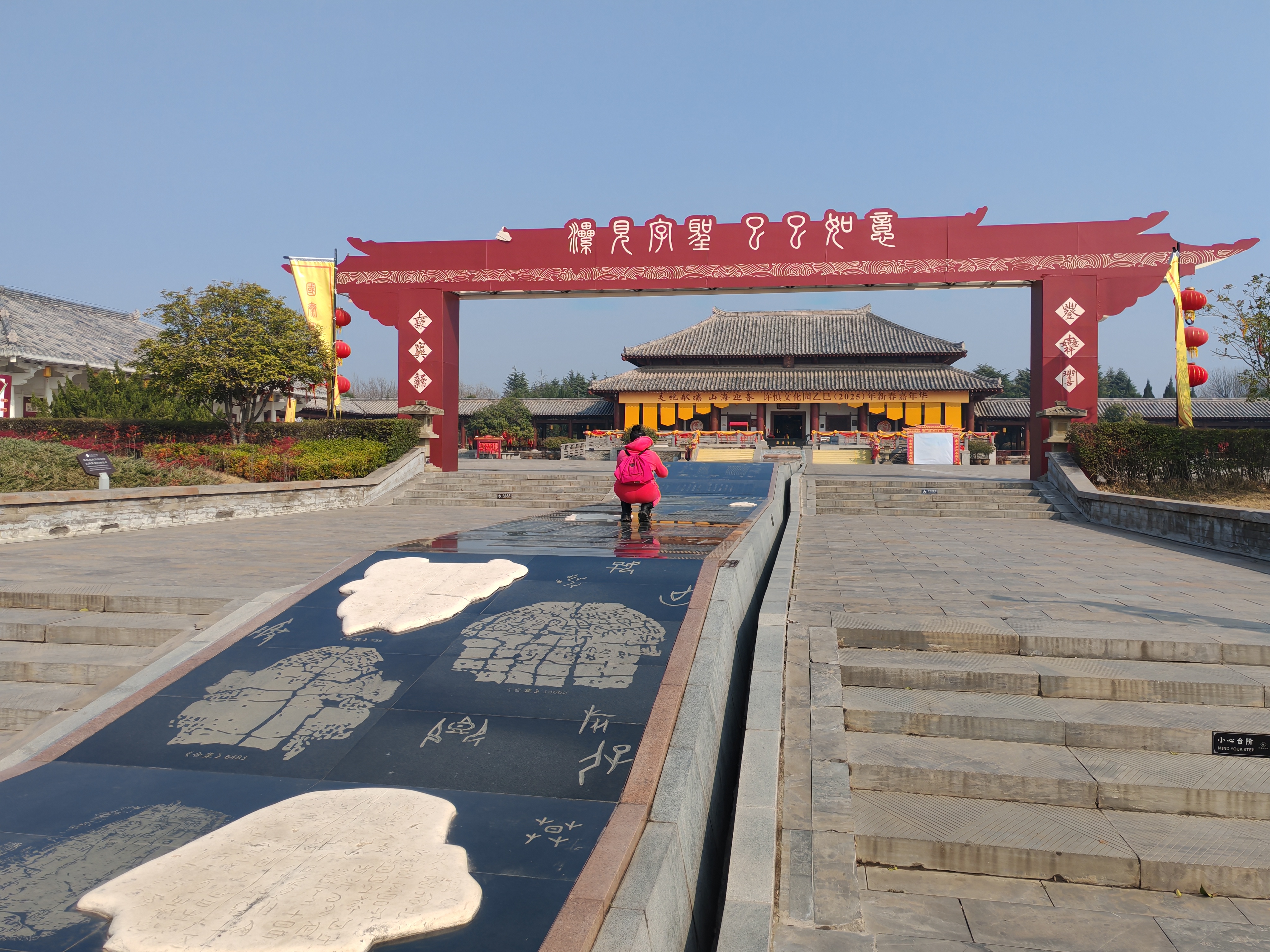 許慎文化園在清明節(jié)有踩踏漢字大道的不文明行為