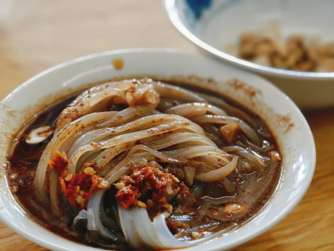 漯河涼粉的特色在于其獨(dú)特的工藝與風(fēng)味。不少家庭作坊至今仍堅(jiān)持古法:用石磨細(xì)細(xì)研磨新鮮豌豆,經(jīng)過(guò)浸泡、磨漿、沉淀、熬煮等多道工序,這樣做出的涼粉格外筋道爽滑。調(diào)味上,漯河人也頗有心得,融合南北特色,常加入本地特有的藿香葉、荊芥等香草,調(diào)出酸辣爽口的“沙澧風(fēng)味”,與開(kāi)封炒涼粉、靈寶一生涼粉等河南其他地方的涼粉風(fēng)味區(qū)別開(kāi)來(lái),成為胡辣湯、燴面之外漯河飲食文化中不可或缺的一環(huán)。