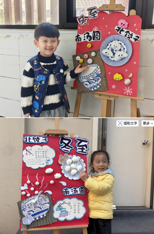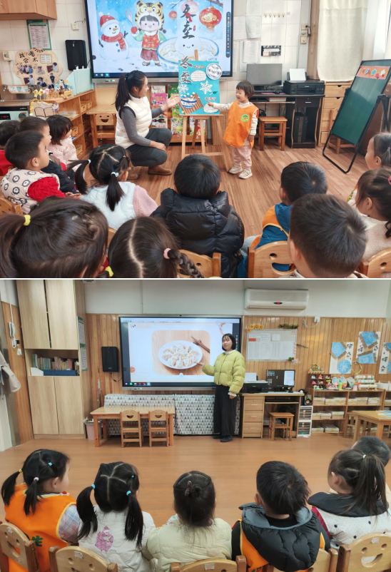 本次冬至主題系列活動依據(jù)幼兒年齡特點,設計了層次分明、趣味橫生、知行合一的活動內容,讓傳統(tǒng)文化在孩子們看一看、做一做、嘗一嘗的親身經歷中變得可感、可知、可傳承。