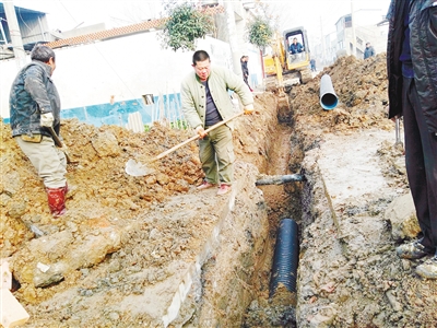 村里正在加緊鋪設(shè)排污管道。